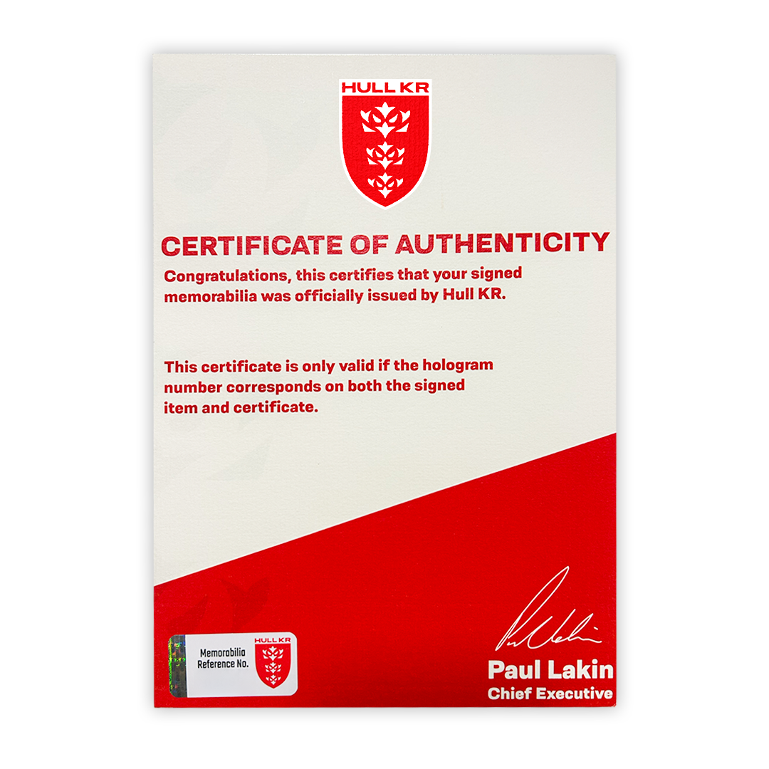 Own a piece of Club history from Hull KR's first ever Grand Final in 2024. Every piece of Club memorabilia comes with a certificate of authenticity.